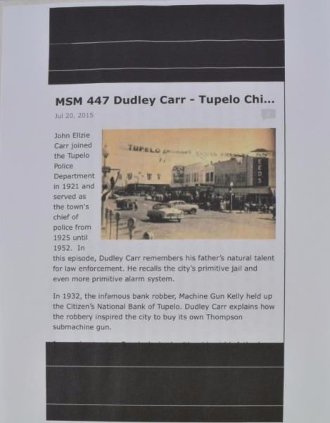 * Belonged to Tupelo Police Chief John Elzy Carr.