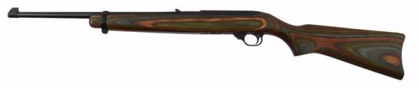 * 18" . Laminated; Colored. Open Sights; Sling Swivels; Scope Mount. Warning; Laminated Stock - Brown, Green & Gray. 100% Blued Steel.