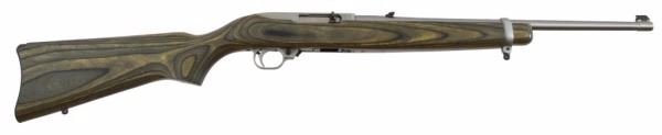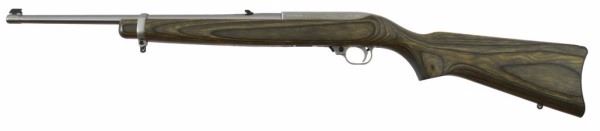 * 18" Barrel. Gray Laminated Wood. Open Sights; Scope Base; Ruger Sling. New in Box. Stainless Steel