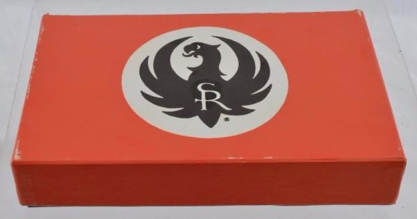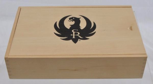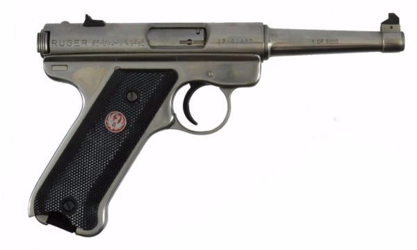 * Pistol. 4.75". Black Plastic; Checkered. Fixed Sights; Wooden Salt Fish Box. '1 of 5000' on Barrel; 'Wm. B. Ruger' Signature on Chamber. New in Box. Stainless Steel; Tapered Barrel.