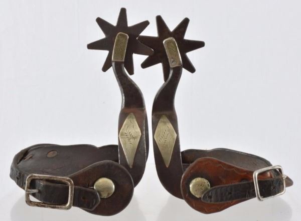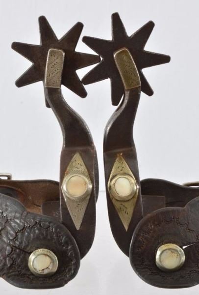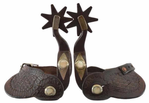 Lot 242 Unmarked Kelly Bros Mother of Pearl Mounted Spurs