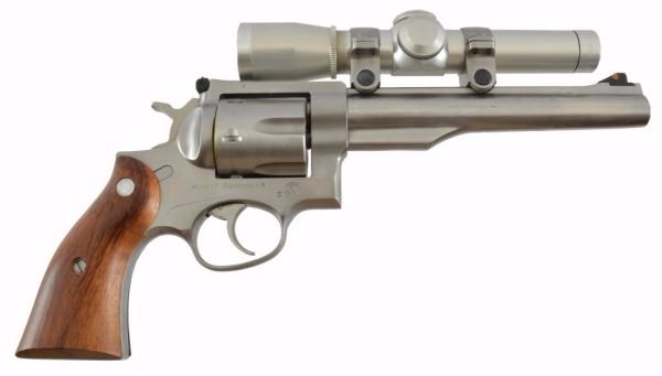 * Revolver. 7.5". KRH44R. Walnut. Scope Rings; Leupold 2X Stainless Pistol Scope. Warning. New in Box. Stainless Steel.