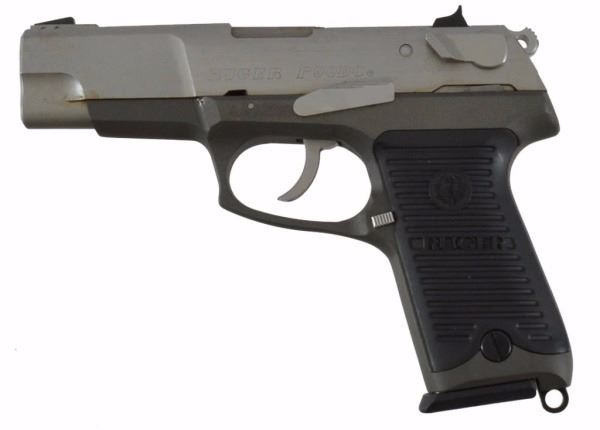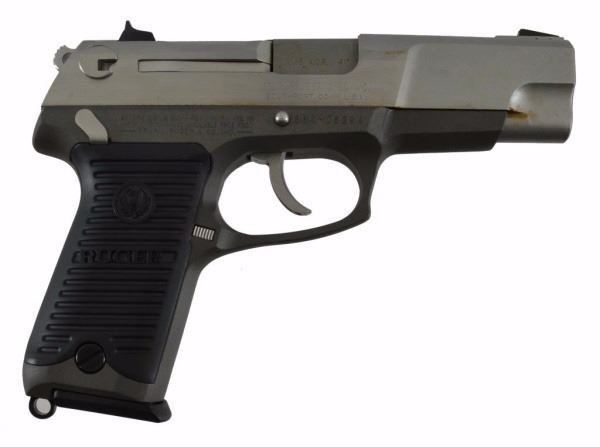 * Semi-Auto. 4.5". KP90DCC. Black Plastic. Box; Lock & Keys; Two Clips & Loading Tool. Ruger Logo on Grip Panels. New in Box. Stainless Steel.