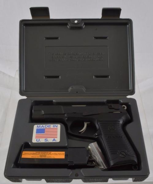 * Semi-Auto. 4.5". P89DCC. Black Plastic. Black Plastic Box; One Clip. Ruger Logo on Grip Panels. New in Box Blued Steel.
