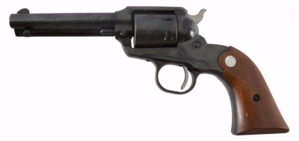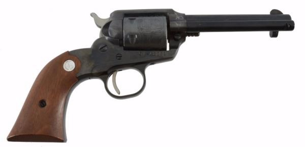 * 4" barrel. Walnut w/White Eagle grips. Fixed sights. Engraved Cylinder. Blued Steel; Blued Trigger Housing. 100% condition.