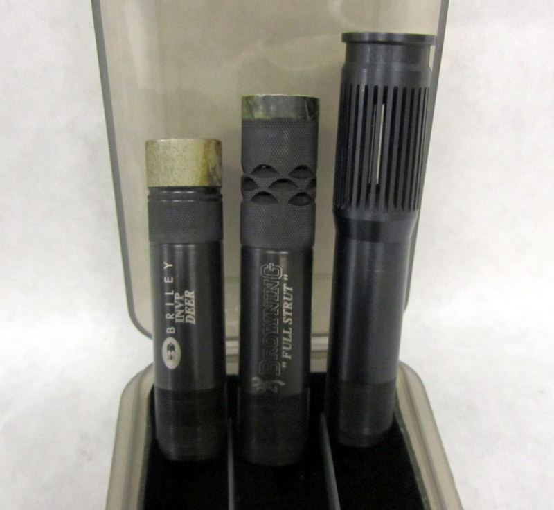 MADD SUPERMAX TURKEY CHOKE. BROWNING FULL STRUT TURKEY CHOKE. BRILEY RIFLED DEER CHOKE. IN MTM CHOKE TUBE CASE.