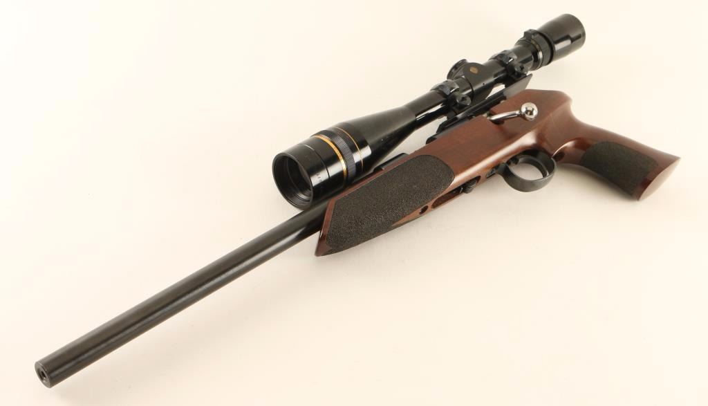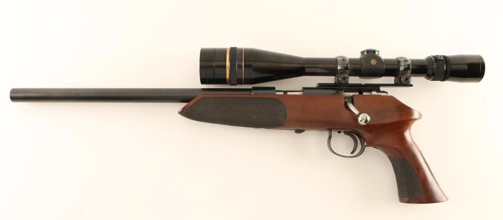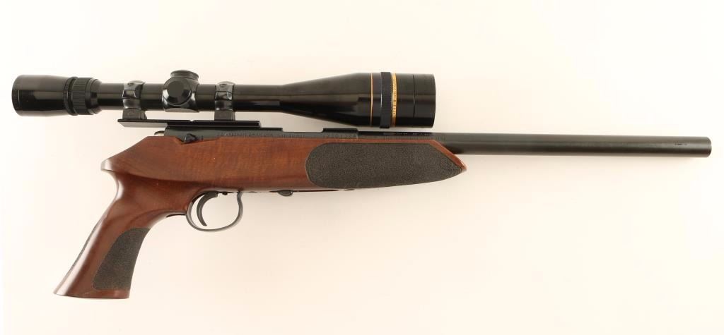 High quality West-Germany made magazine-fed bolt-action target pistol made for left hand shooting and chambered in .22 Long Rifle. Features a blued finish, 14" heavy barrel, Leupold Vari-X III 6.5-20x scope with 50 Ft. Adapter, no magazine, adjustable serrated trigger, manual safety, round bolt handle and one-piece pistol grip stock with stippled grips. Pistol exhibits approximately 95% of it's original blued finish showing some light scattered rust forming on the underside of the barrel, few handling marks and slight muzzle wear. Action is smooth, bore is pristine, optics are sharp and wood stock is fine. Condition is very good+++. ***Modern Firearm***