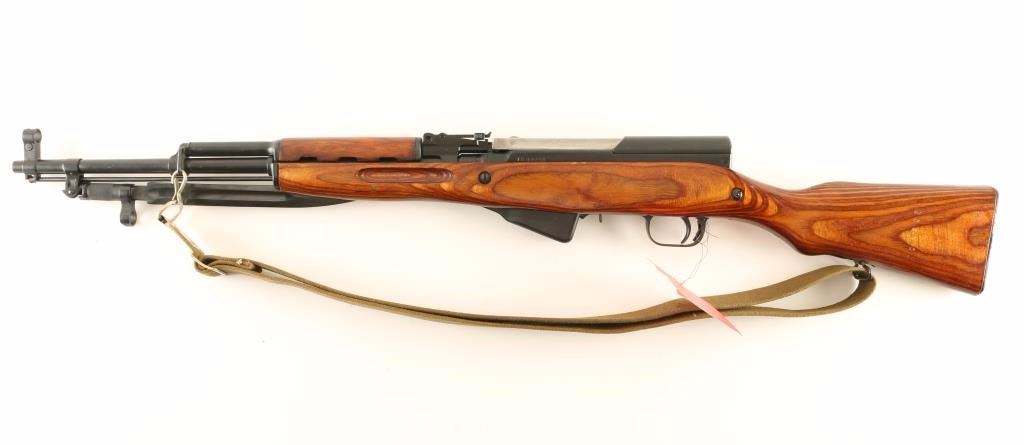 Russian military semi-automatic service rifle chambered in 7.62x39mm, and produced at the Tula Arsenal circa 1956. Imported by C.D.I. of Swan VT with import marks on the receiver. Features a blued finish, 20 3/8" barrel, hooded post front sight, tangent rear sight graduated to 1,000 meters, cleaning rod, blued blade style bayonet, 10 round fixed magazine, manual safety, smooth trigger, green canvas sling, smooth wood handguard, smooth laminated wood pistol grip shoulder stock and trapdoor metal buttplate with cleaning kit. Serial numbers match on the receiver, bolt carrier, magazine, trigger guard, top cover, gas tube(scratched) and stock. Rifle exhibits approximately 97% of it's blued finish showing scattered light wear & handling marks. Action is smooth, bore is pristine and wood stocks are fine with few blemishes. Condition is excellent. ***C&R Firearm*** ***Modern Firearm***