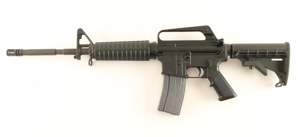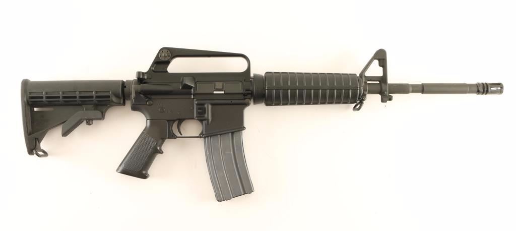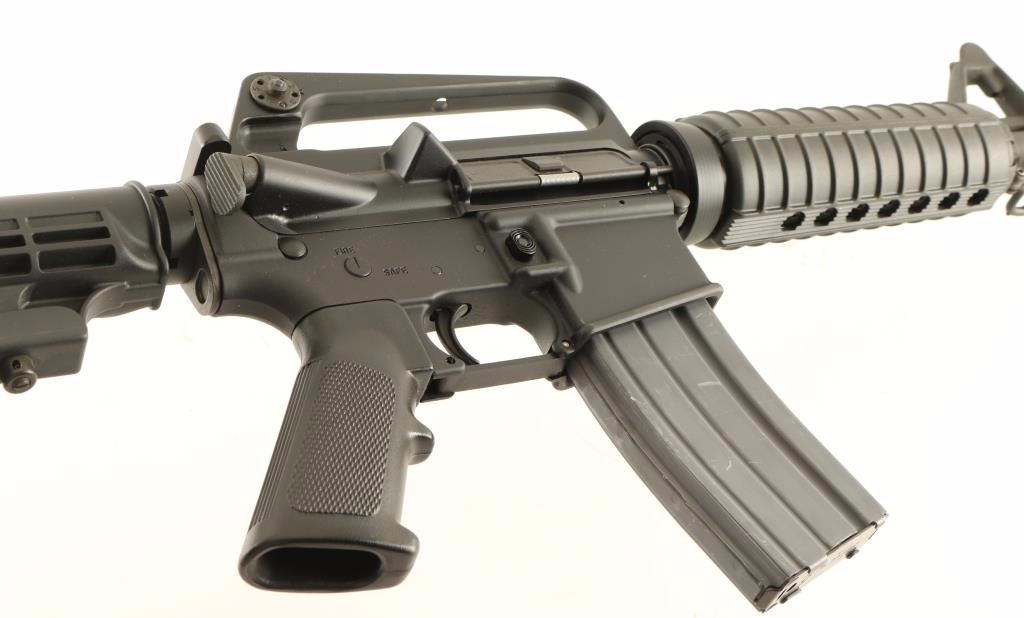 Semi automatic AR platform rifle chambered in 5.56x45mm NATO. Features a matte black finish, parkerized 16.25" M4 profile barrel, A2 birdcage flash hider, A2 winged post front sight with bayonet lug, windage adjustable dual aperture rear sight in the carrying handle, Anchor Harvey forged aluminum upper, forward assist, shell defector, dust cover, AR-15 BCG, push button magazine release, 30 round steel magazine, manual safety, sling swivels, A2 black synthetic pistol grip, carbine length handguard and six-position telescoping shoulder stock. Rifle exhibits approximately 98% of it's original finish with scattered light handling marks/scuffs. Action is smooth, bore is excellent, and stocks are fine. Condition is excellent. ***Modern Firearm***
