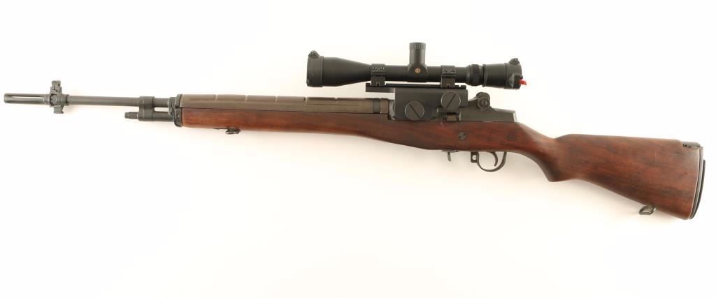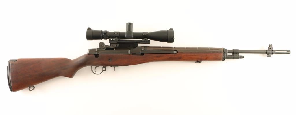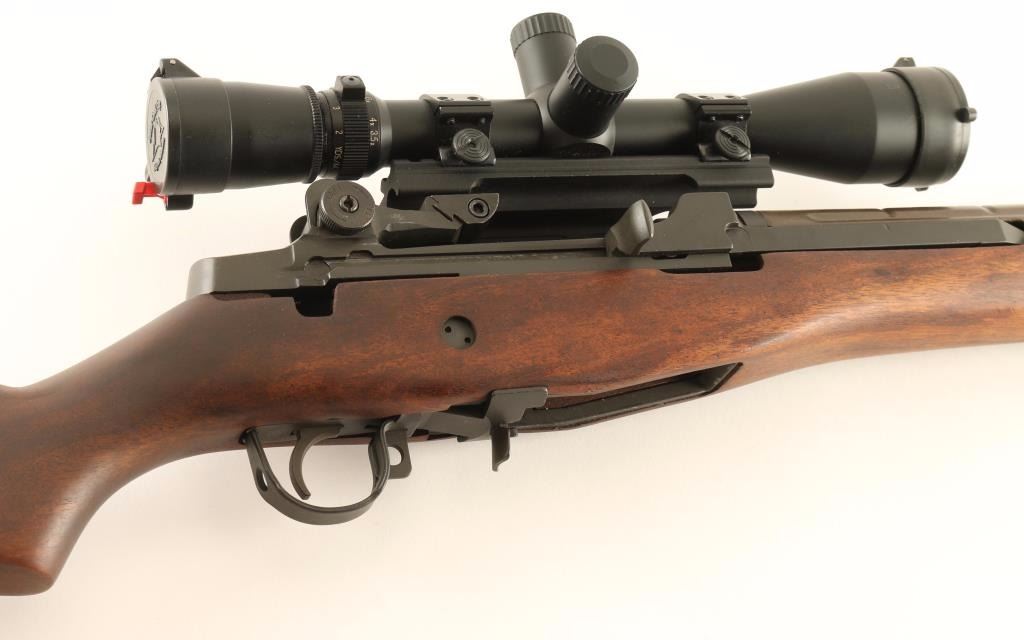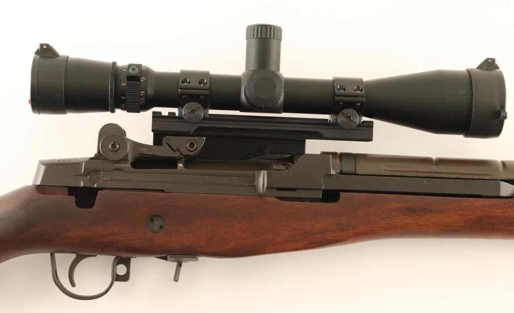 Early semi-automatic version of the M14 battle rifle chambered in 7.62x51mm Nato, built utilizing some GI parts circa 1989. Features a parkerized finish, 22" H&R barrel dated 11-62, flash hider with bayonet lug, winged blade front sight, adjustable rear aperture sight, Leupold Vari-X II 3.5-10x scope with flip-up caps on factory style base, Winchester bolt, manual safety, no magazine, sling swivels, trapdoor metal buttplate, brown composite handguard, and International Harvester proofed M14 style pistol grip wood shoulder stock. The stock also looks to be stamped with a 'circle P' on the inside of the pistol grip but is too worn to discern. Rifle retains approximately 96% of it's original finish with only light wear and few handling marks observed. Action is smooth, bore is pristine, optics are sharp and wood stock is fine. Condition is excellent. ***Modern Firearm***