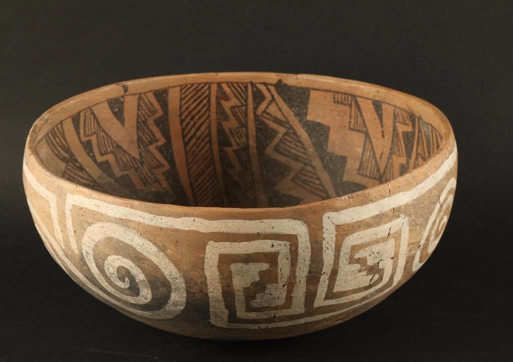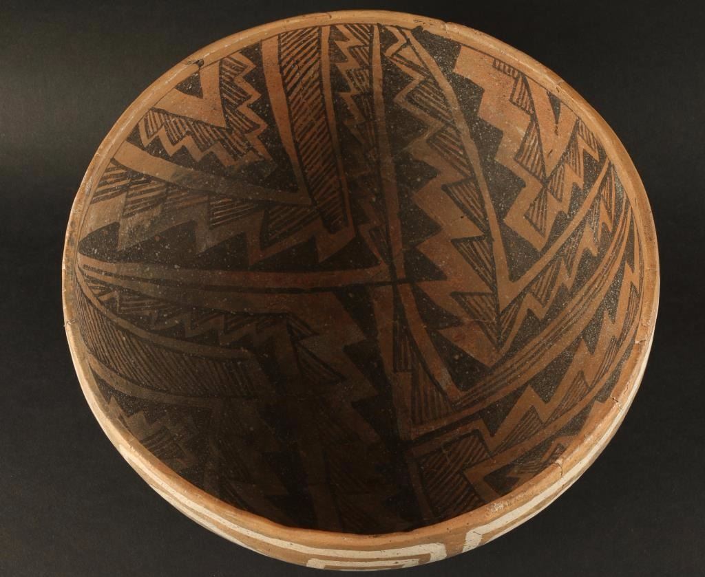 1175-1300 A.D. Measures 10" dia x 4" deep. Shows some repair. Includes Statement of Provenance.