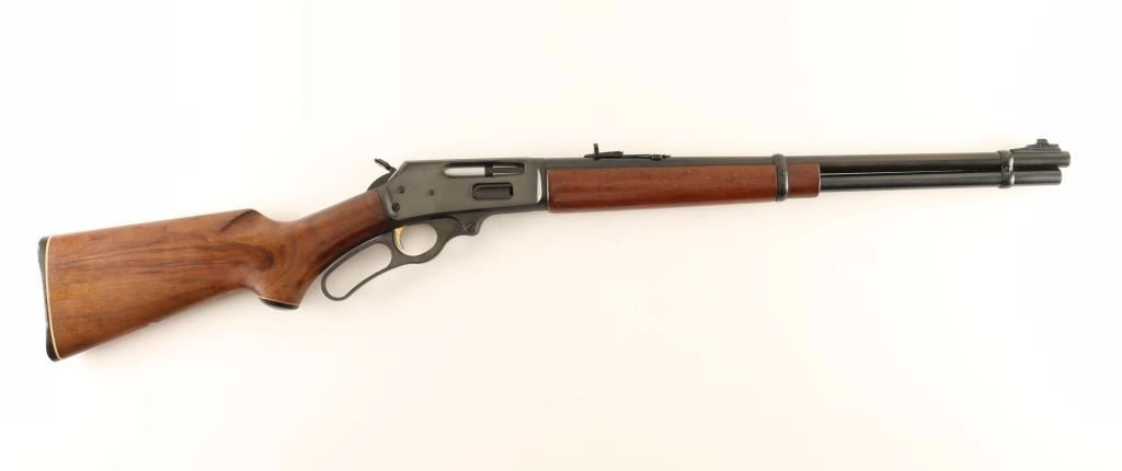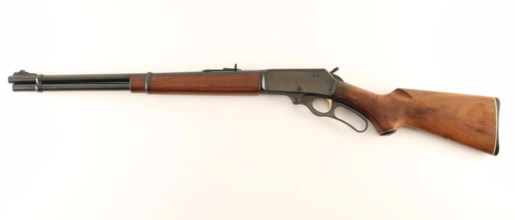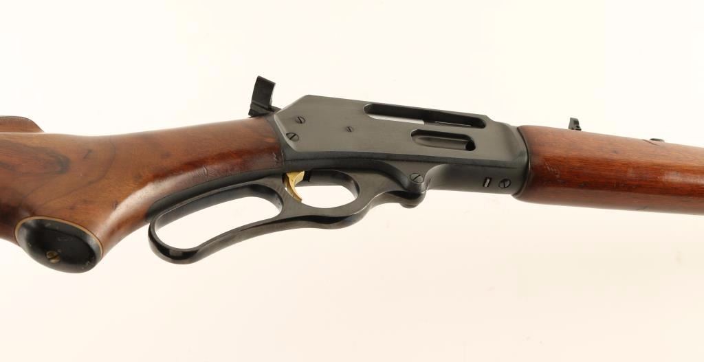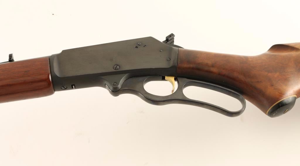 American made lever-action repeating rifle chambered in .30-30 Winchester, circa 1980. Features a blued finish, 20.25" 'JM' marked barrel, full-length tube magazine, ramped blade front sight, adjustable rear sporting sight, drilled & tapped receiver, curved lever, smooth gold trigger, hammer extension, smooth American walnut semi-beavertail forend and pistol grip shoulder stock with black grip cap & factory buttplate. Rifle retains approximately 90% of it's original blued finish showing light scattered wear & surface rust. Action is smooth, bore is very good and wood stocks are very good. Condition is good to very good. ***Modern Firearm***