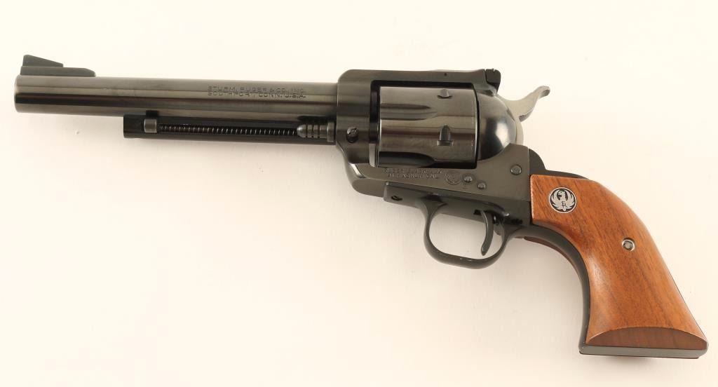 Vintage American made six-shot single action revolver chambered in .41 Magnum, circa 1968(fourth year production.) Features a blued finish, 6 1/2" barrel, raised ramp front sight, adjustable rear window sight, ejector rod, fluted cylinder, flat top three-screw frame, smooth trigger, serrated hammer spur, black anodized aluminum alloy grip frame and two-piece smooth walnut grips with Ruger medallions. Revolver exhibits approximately 96% of it's original blued finish showing slight muzzle wear, mild handling marks and some small scattered blemishes. The grip frame also shows some small scattered blemishes with no major wear observed. Action is smooth with tight lock-up, bore is excellent and wood grips are fine. Condition is excellent. ***C&R Firearm*** ***Modern Firearm***