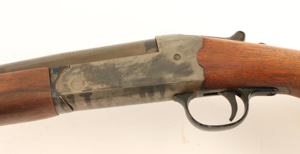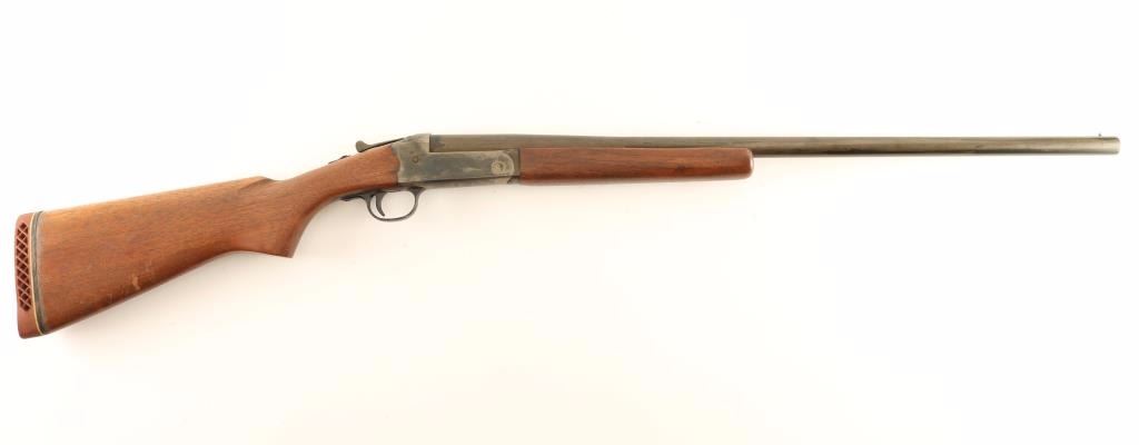 Vintage break-open single shot shogun chambered foe 2 3/4" 20 gauge shells, circa 1938-1965. Features a blued refinish, 28" barrel, silver bead front sight, extractor, smooth trigger, checkered top lever, sliding tang safety, smooth wood forend and pistol grip shoulder stock with Pachmayr recoil pad. Shotgun exhibits little remaining finish with the balance of the metal surfaces turned to a grey patina. Action performs well, bore is good+ and wood stocks are good+ with blemishes & a 1/2" hairline crack on the wrist extending from the left side of the receiver. Condition is near good. ***C&R Firearm*** ***Modern Firearm***