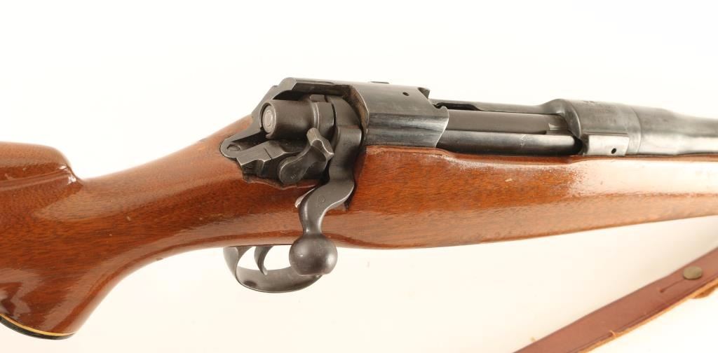 Sporterized U.S. Military contracted bolt action service rifle chambered in .30-06 Springfield, circa 1918. Features a blued refinish, 24" barrel dated "8-18", ramped blade front sight, Williams sliding rear window sight, brown leather sling, 6 round internal box magazine, serrated trigger, manual safety, bent bolt handle and Monte Carlo style wood stock with black forend tip, grip cap & buttplate marked "Fajen". Rifle retains approximately 50% of it's blued finish with heavy thinning throughout. Action is strong, bore is very good++, and wood stocks are good to very good with many small blemishes. Condition is good as sporterized. ***C&R Firearm*** ***Modern Firearm***