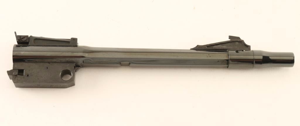 Blued 8.5" part octagonal barrel with ports, ramped patridge front sight, adjustable rear window sight, and threaded muzzle with 1.5" barrel extension. Barrel shows only light wear and the bore is excellent. Condition is very good.