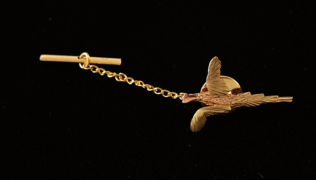 Flying pheasant with beautiful pink and gold tones from "Landstrom's the original Black Hills Gold Company". In original box.