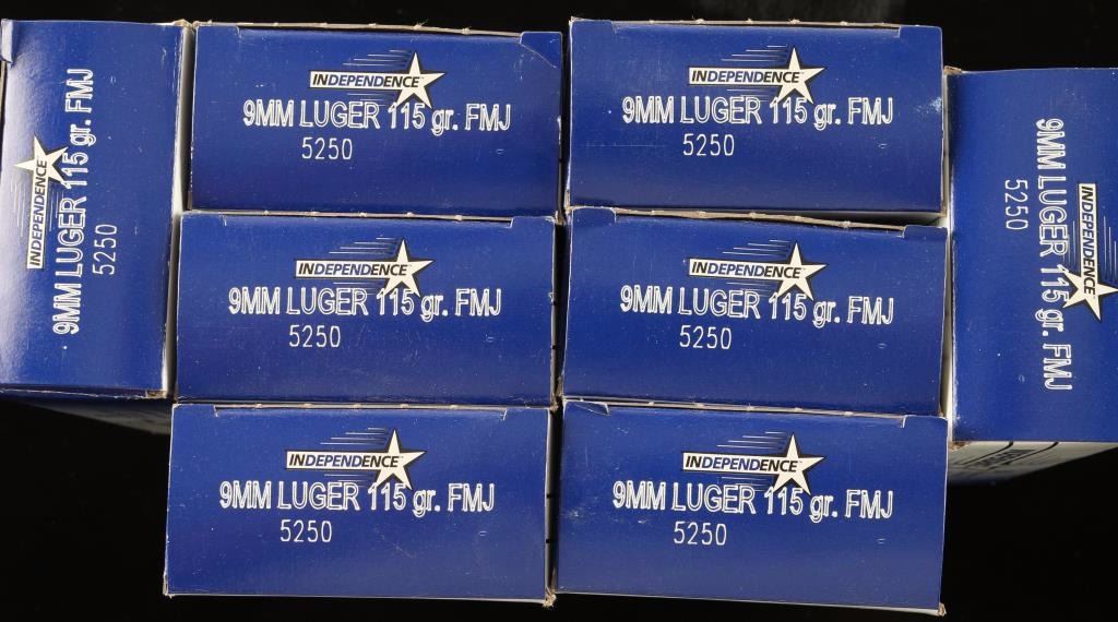 Independence 115 Gr FMJ CF 400 Rds in original boxes.