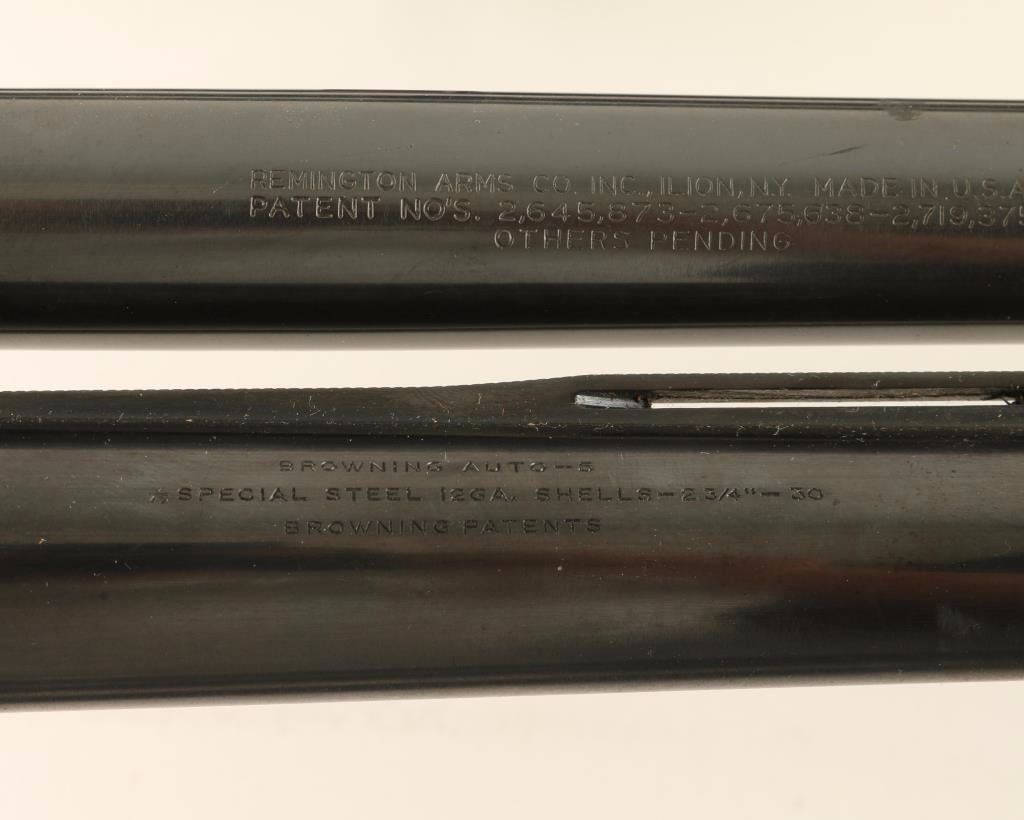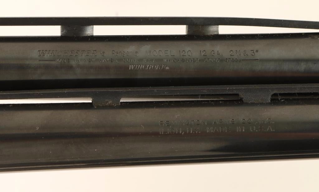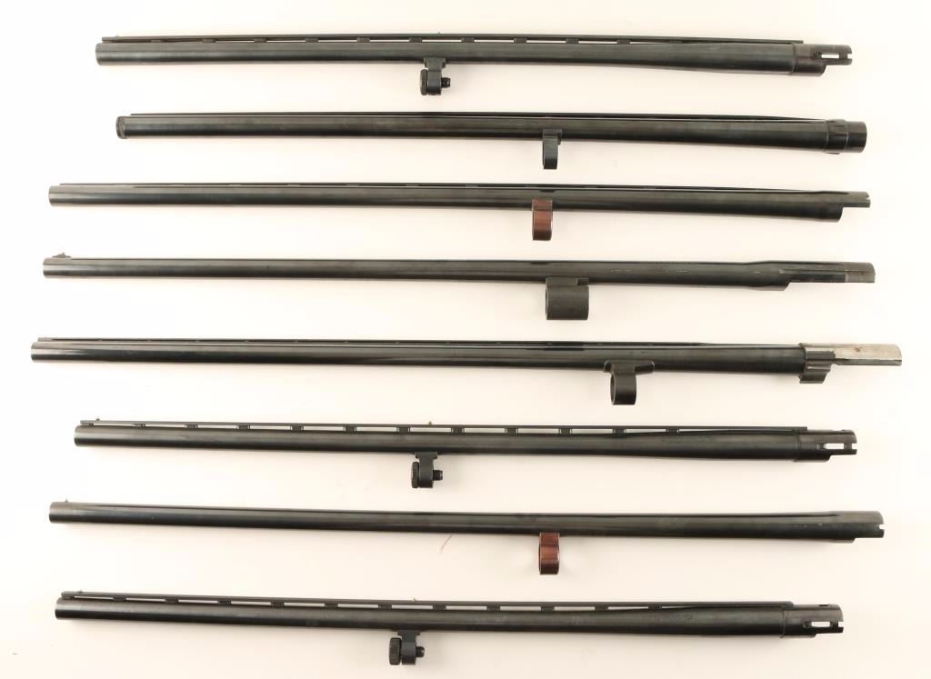 Including; blued 12 Ga Remington 2 3/4, Remington 12 Ga 2 3/4 with a vent rib, Browning Auto 5 12 Ga with a vent rib, Remington 12 Ga,Win Ranger with vent rib and blued barrel, and three unknown 12 Ga,