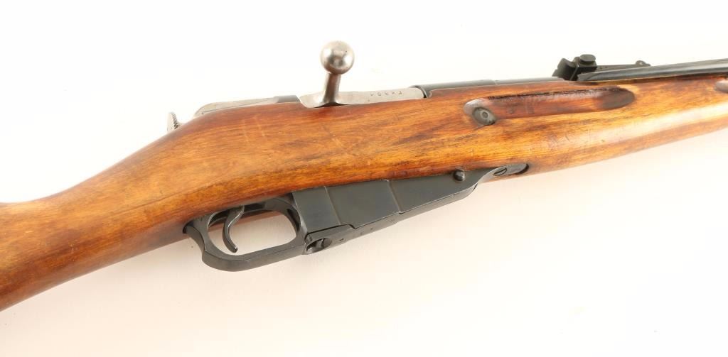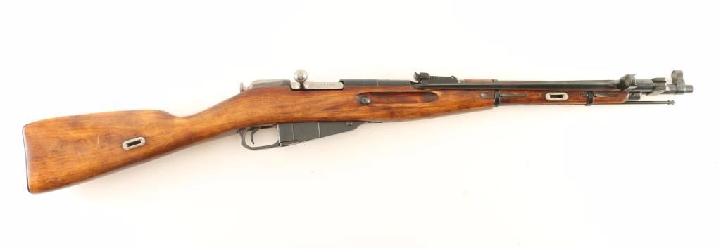Russian military bolt action service rifle chambered in 7.62x54R, circa 1948. Features a blued finish, Izhevsk marked 20.25" barrel, hooded post front sight, graduated rear sight to 1,000 meters, folding bayonet, two barrel bands, 5 round fixed magazine, straight bolt handle, smooth wood handguard and straight grip shoulder stock. Matching serial numbers on barrel, bolt, buttplate, stock, & floorplate. Import marks on the barrel & receiver (serial number). Rifle retains approximately 95% of it's blued finish showing light wear and few scattered handling marks. Action is smooth, bore appears excellent but dirty and wood stocks are very good++. Condition is near excellent.. ***C&R Firearm*** ***Modern Firearm***