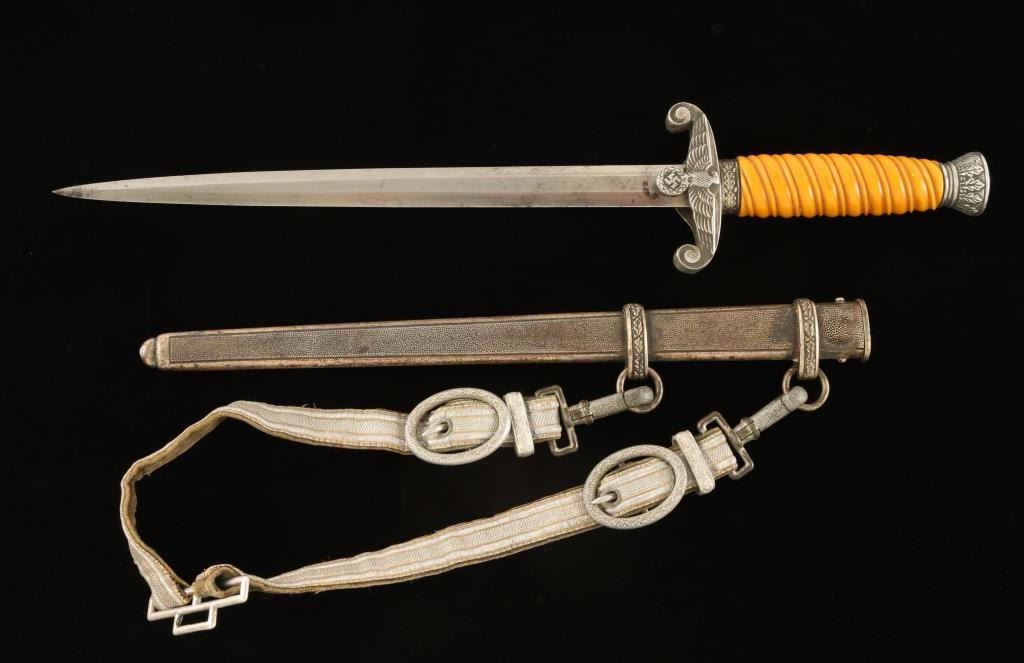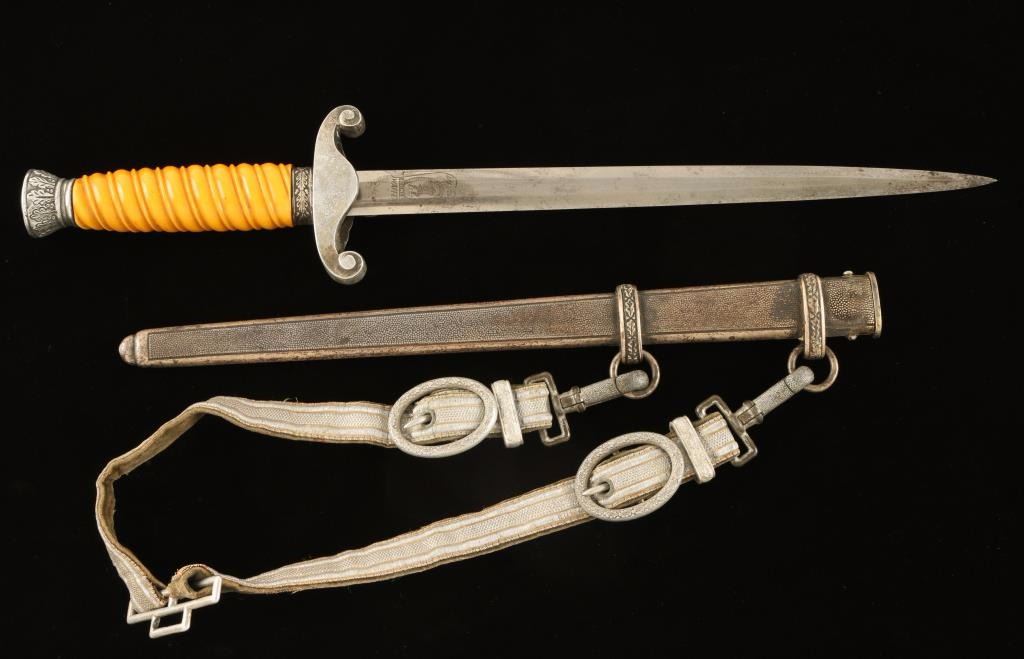 Marked blade reads "Siegfried Waffen Solingen" with soldier swinging a hammer. Also includes hanger