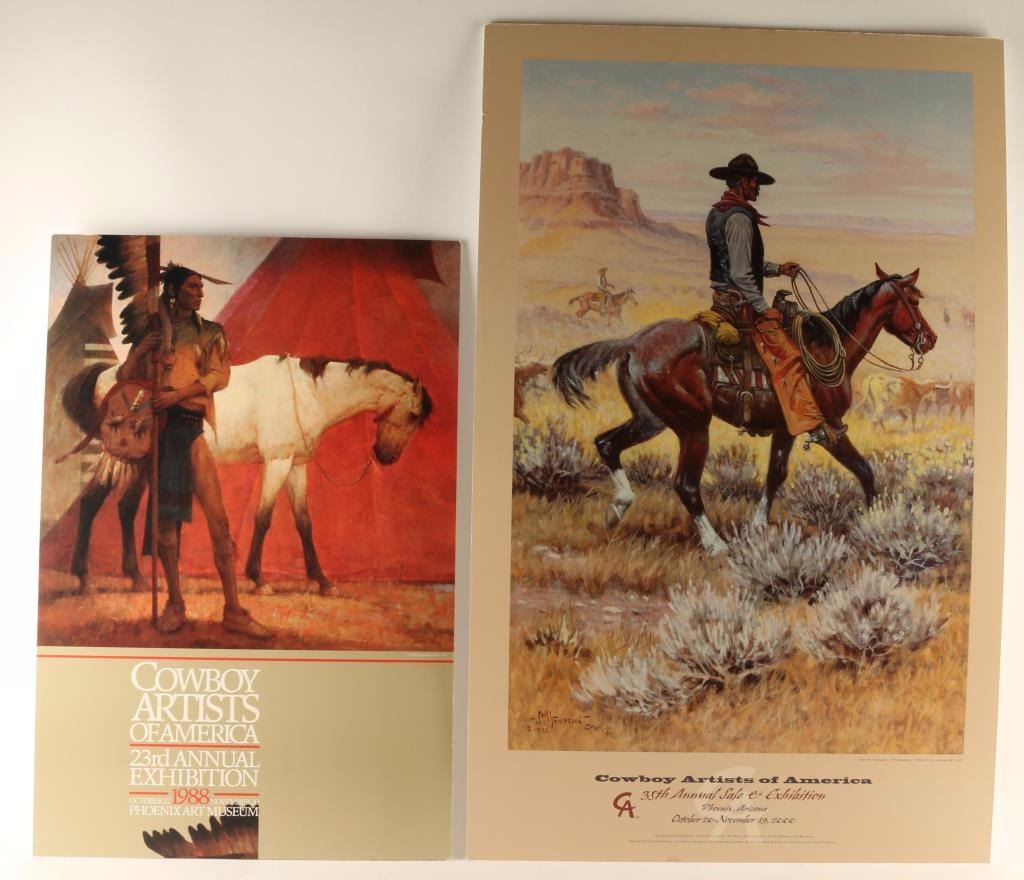 A Colt advertising poster, Cowboy artists of America Phoenix Art Museum 1988, and Cowboy artists of America 2000. All three mounted on foam boards, various sizes.