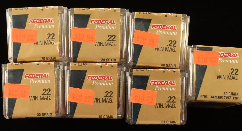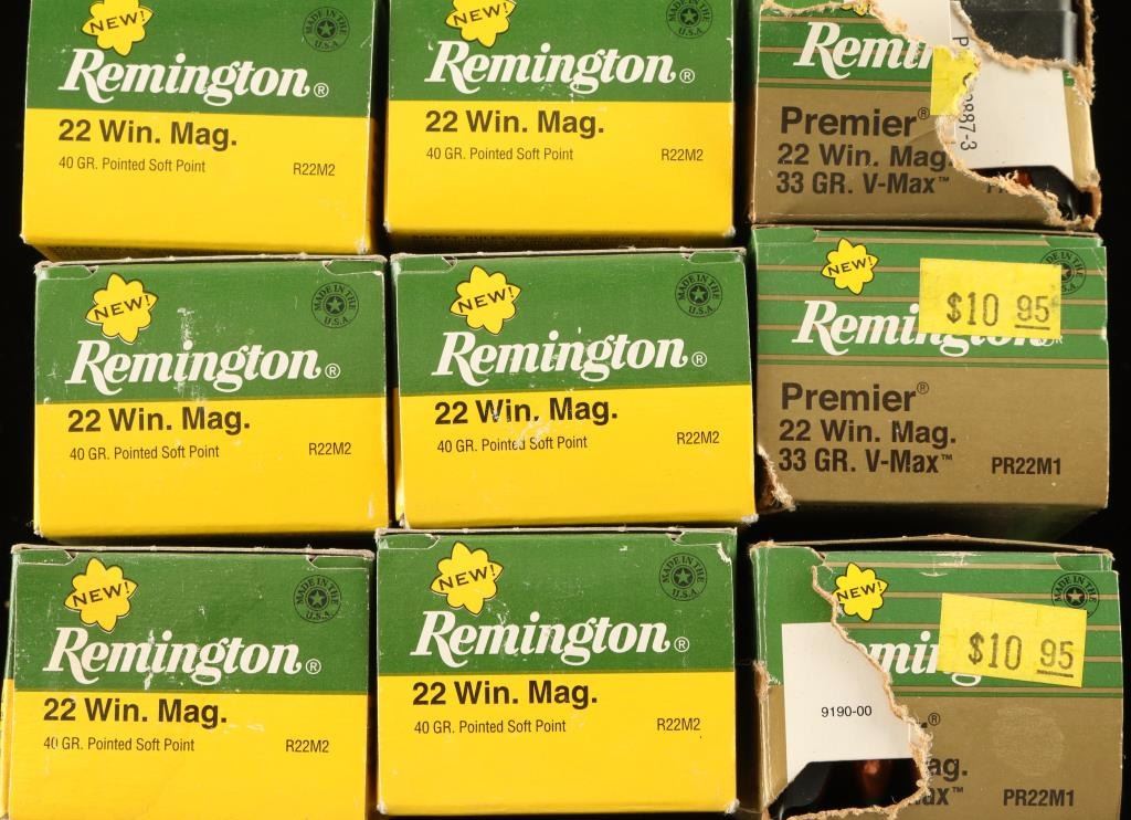 Remington 22 Win Mag 650 Rds, Fiocchi Performance 550 Rds new in box. Also includes 400 Rds of Federal Premium 22 Win Mag.