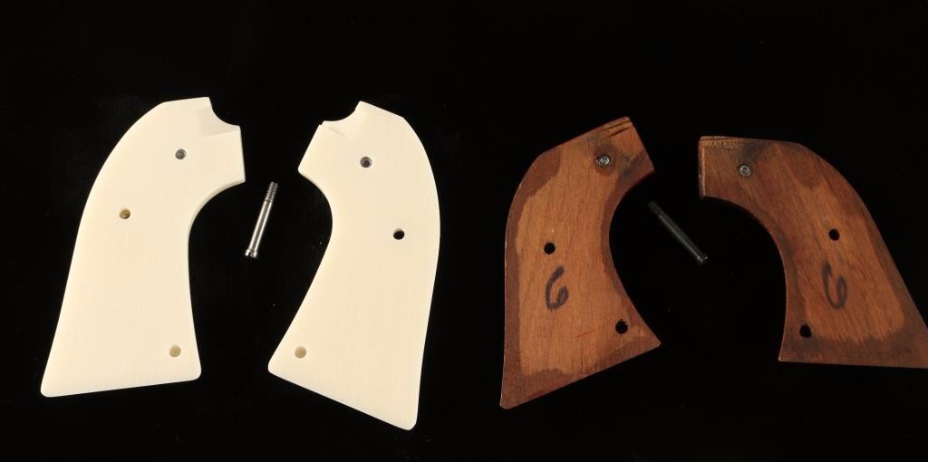 Faux Ivory Ruger Blackhawk grips and wood Blackhawk grips.