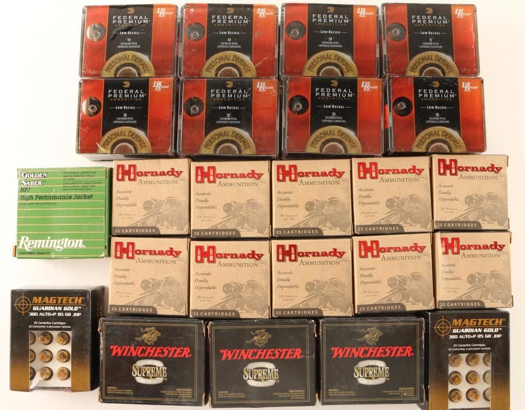 160 Rds Federal Premium Personal Defense, 60 Rds Winchester, 40 Rds MagTech Guardian Gold, 20 Rds Remington Golden Sabre, 250 Rds Hornady, 500+ Rds total.