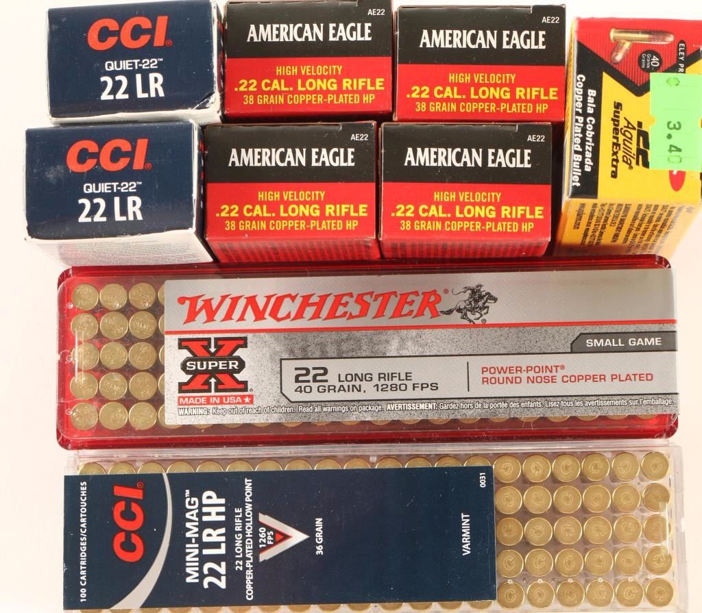 200rds of 22lr CCI, 160rds of 22 cal lr by American eagle, 100rds of 22lr by Winchester, 50rds of 22 Aguila,