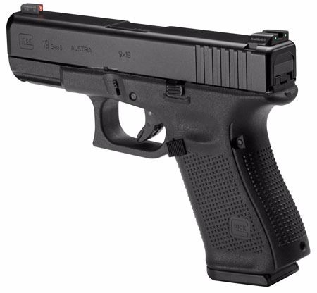 The G19 Gen5 features a no finger grooved, multiple backstrapped, rough
