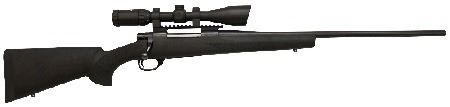 hunting or target shooting package. The bolt action rifle has a blued