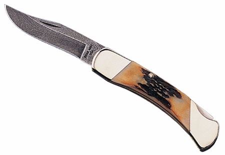 Lot 19 Bear & Son 505D India Midsize Folder 2.75" Damascus Clip Point Stag