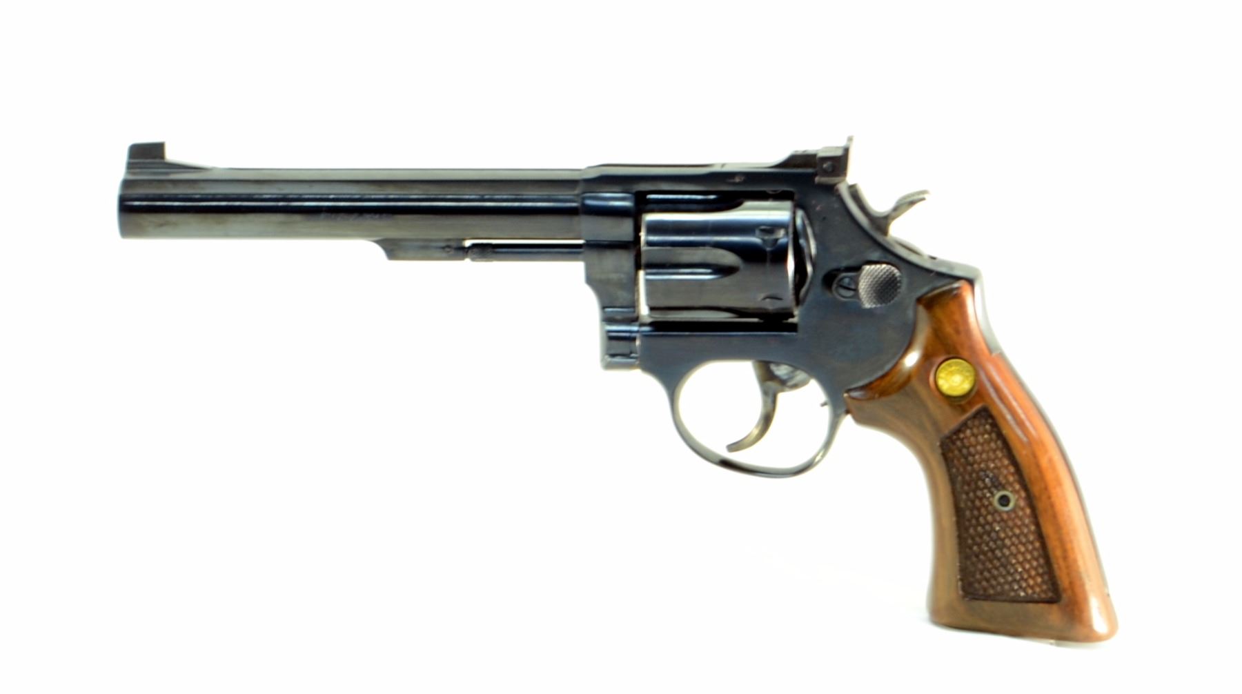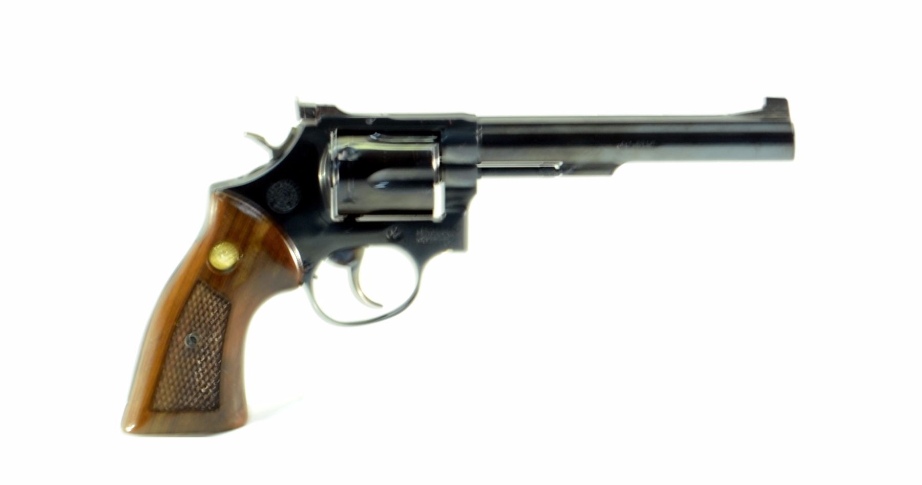 2415-002 Taurus Model 96 .22LR Revolver. 6" Barrel, case coloured trigger/hammer. Checkered wood grips. Made in Brazil.