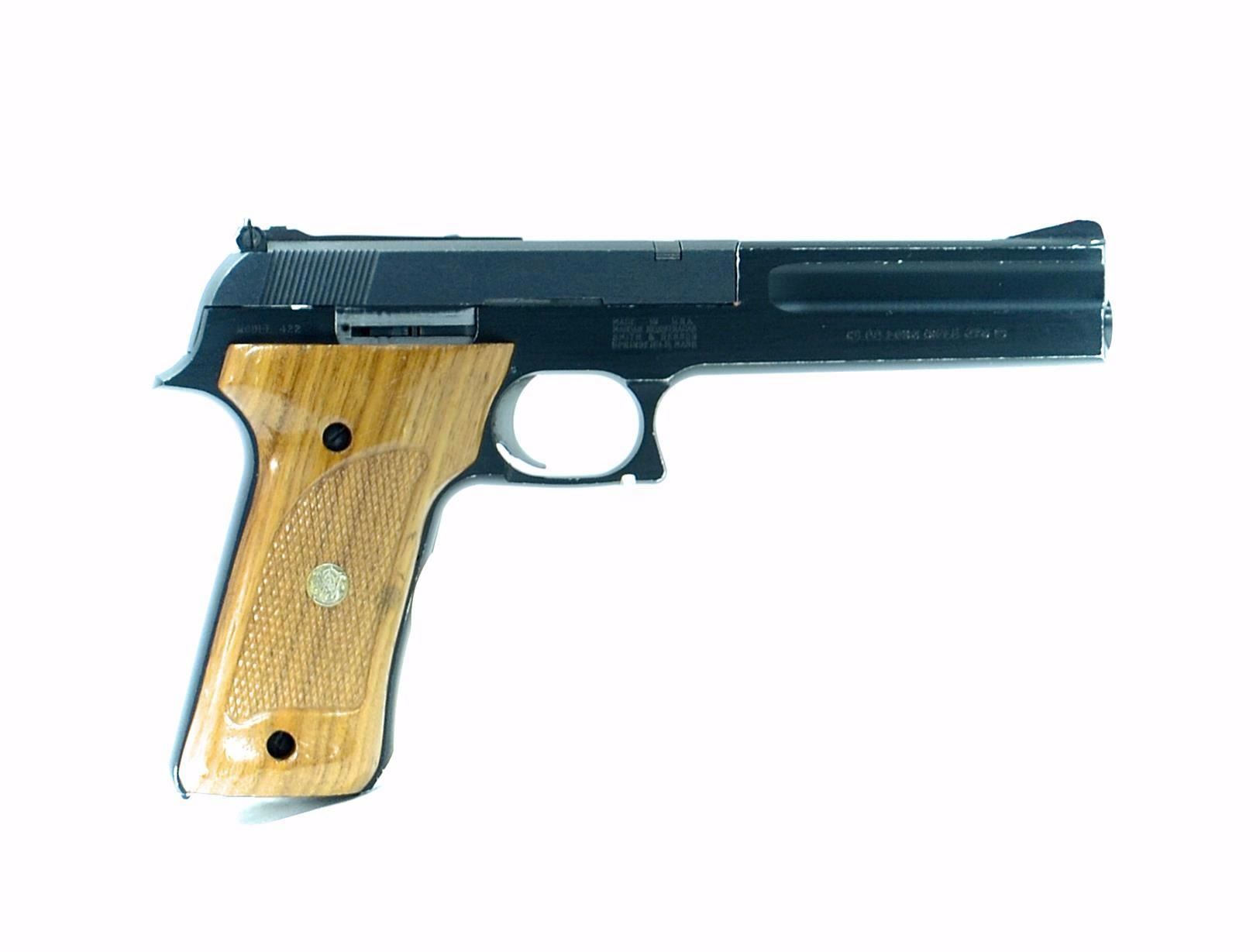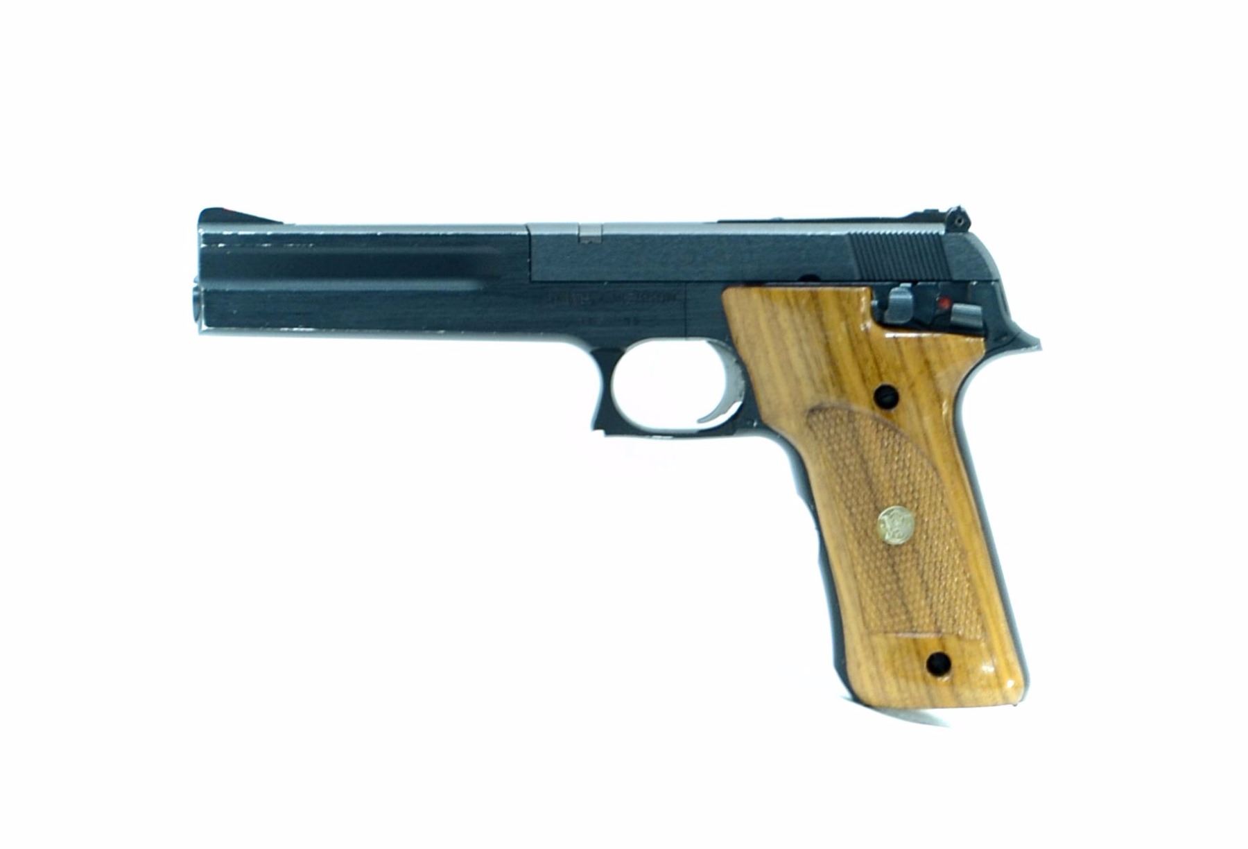 2389-0050, SMITH & WESSON MODEL 42-2, CAL .22LR, TARGET PISTOL, ADJUSTABLE SIGHTS, WOODEN CHECKERED GRIPS SEMI-AUTOMATIC, 152MM BARREL, CONDITION 8/10, MADE IN THE U.S.A, SN. TCE6XXX