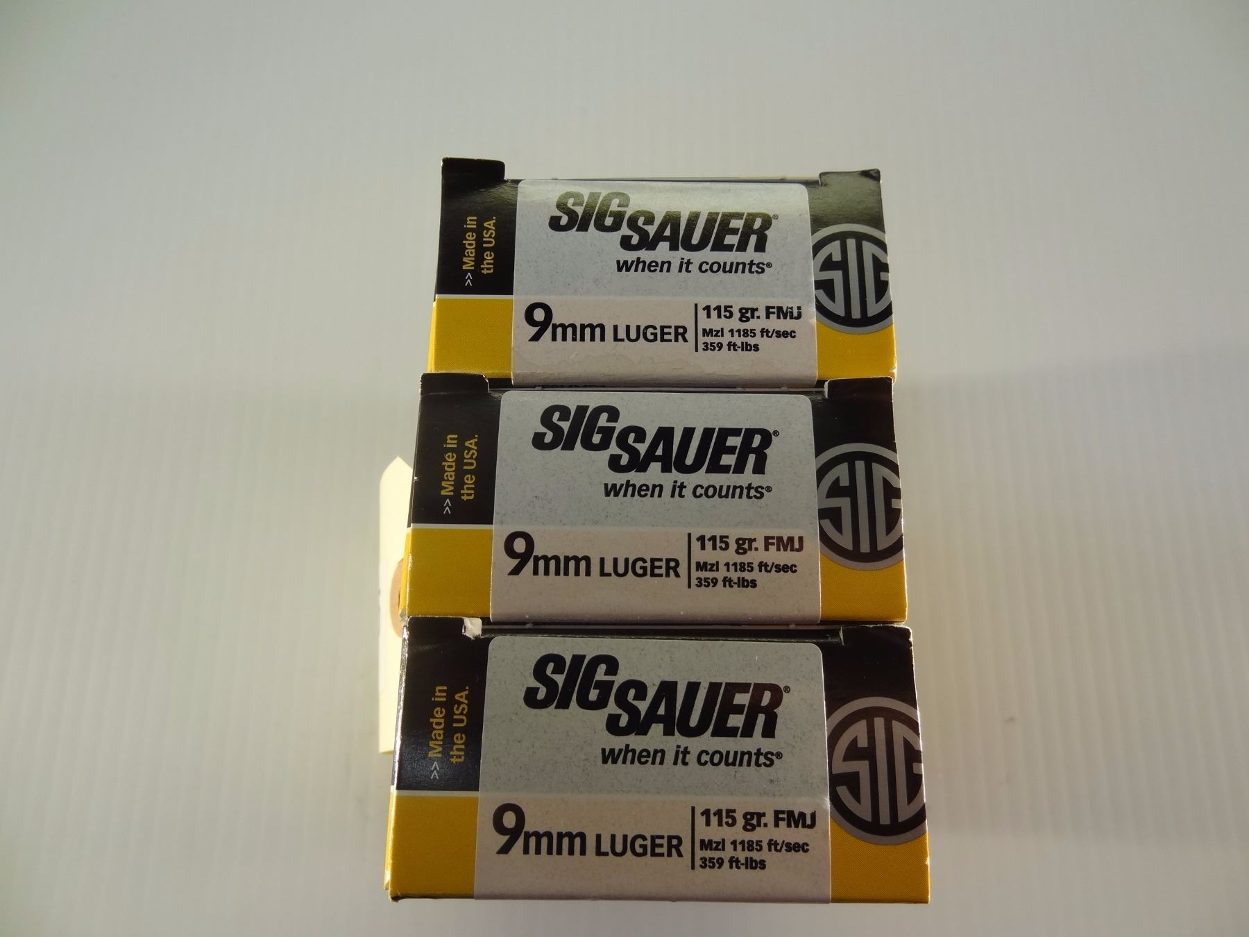 Lot 525 150 ROUNDS SIG SAUER 9MM 115 GRAIN FMJ