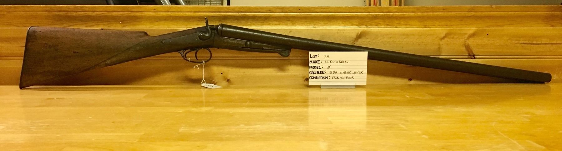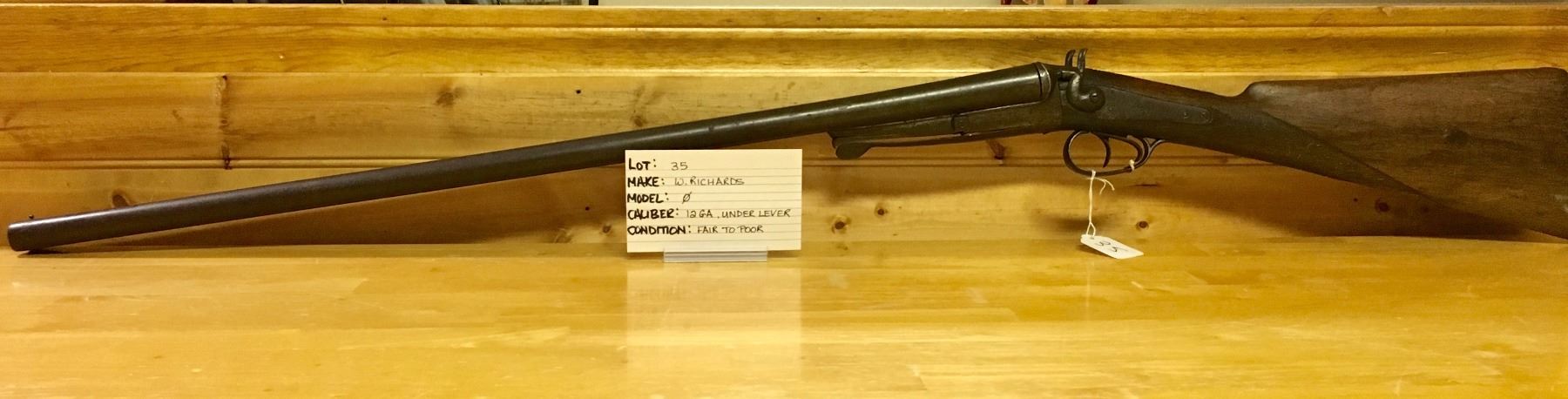 LOT: 35 MAKE: W. RICHARDS MODEL: NONE CALIBER: 12GA, UNDER LEVER CONDITION: P-F SERIAL NUMBER: NONE