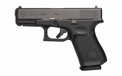 Glock, 19 Gen 5, Safe Action, Compact Size Pistol, 9MM, 4.02" Marksman Barrel, Polymer Frame, Matte Finish, Fixed Sights, 15Rd, 3 Orange Follower Magazines, Glock OEM Rail, Ambidextrous Slide Stop Lever, Flared Mag Well, nDLC Finished Slide and Barrel, No Finger Grooves