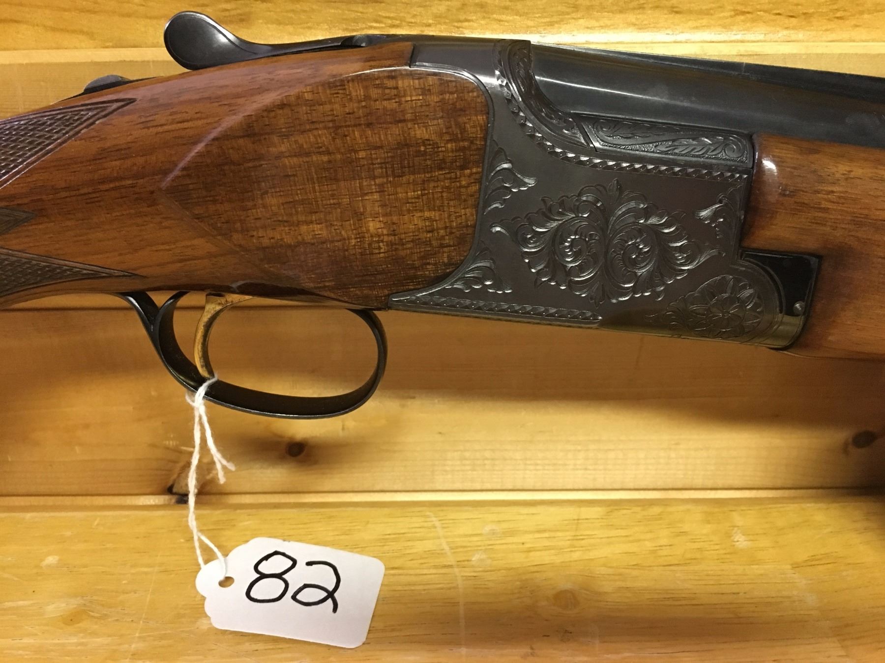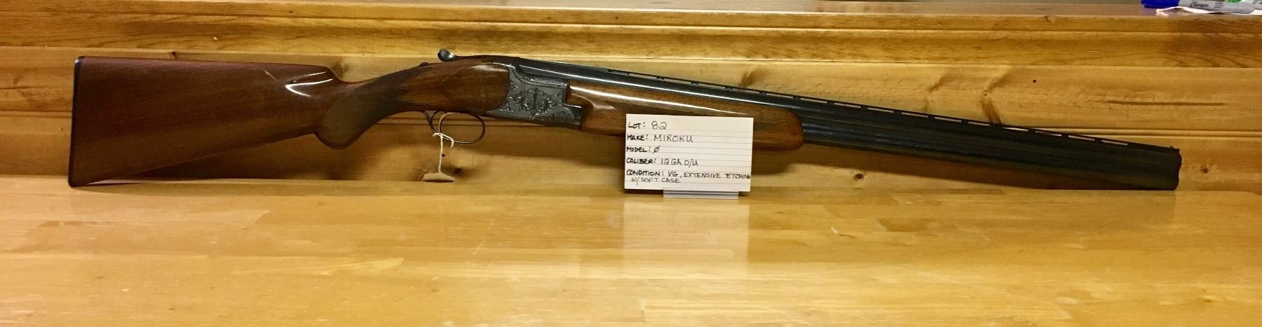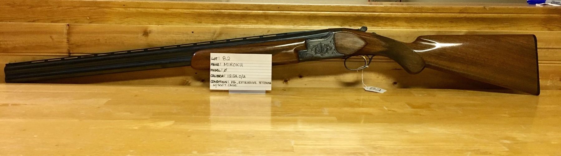LOT:  82 MAKE:  MIROKU MODEL:  NONE CALIBER:  12 GA,  O/U CONDITION:  VG, EXTENSIVE ETCHING,  W/SOFT CASE S/N:  370301
