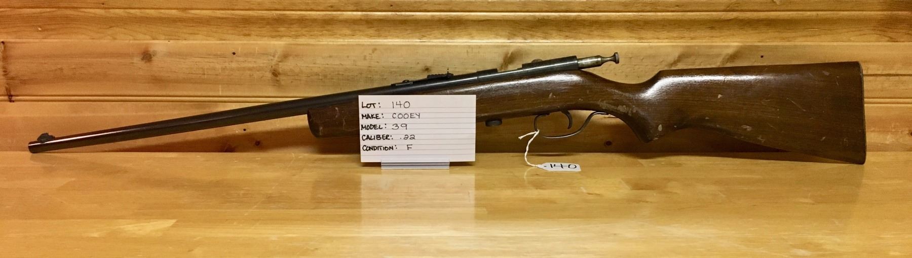 LOT: 140 MAKE: COOEY MODEL: 39 CALIBER: .22 CONDITION: F S/N: NONE