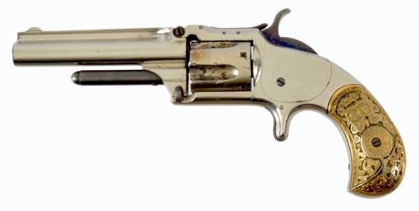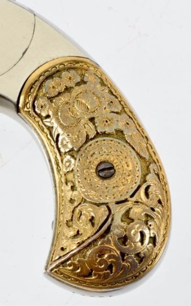 1-1/2 Pocket revolver with scarce highly desirable DeGress gold grips. .32 RF. Gun retains at least 85-90% original nickel finish. Manuf. 1870s. Only fine condition guns were fitted with these gold DeGress