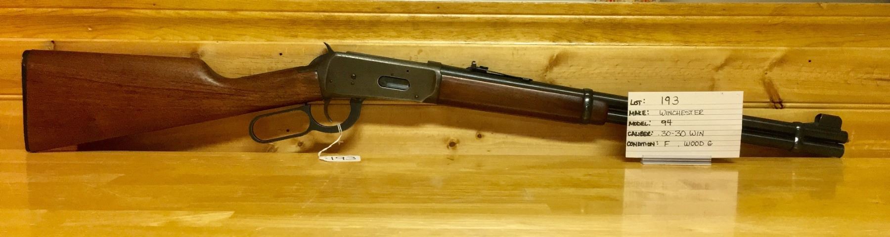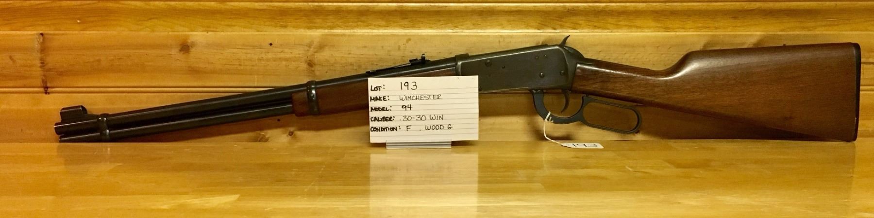 LOT: 193 MAKE: WINCHESTER MODEL: 94 CALIBER: .30-30 WIN CONDITION: F, WOOD G S/N: 5057498