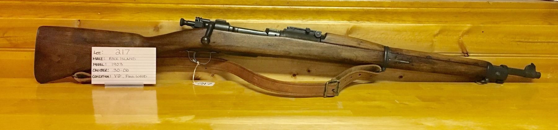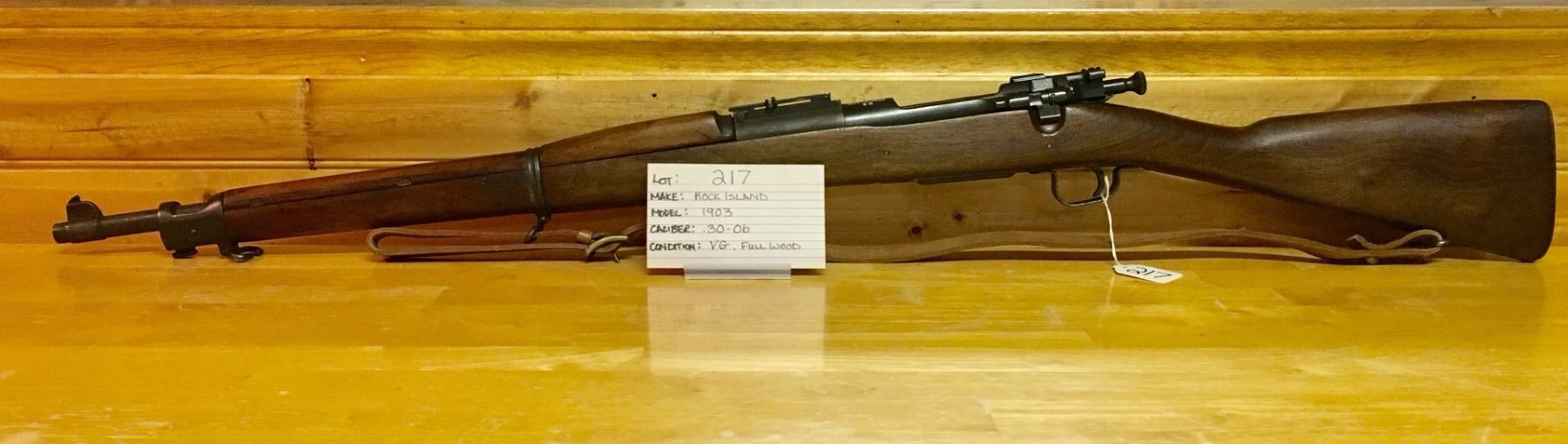 LOT: 217 MAKE: ROCK ISLAND MODEL: 1903 CALIBER: .30-06 CONDITION: VG, FULL WOOD S/N: 288837