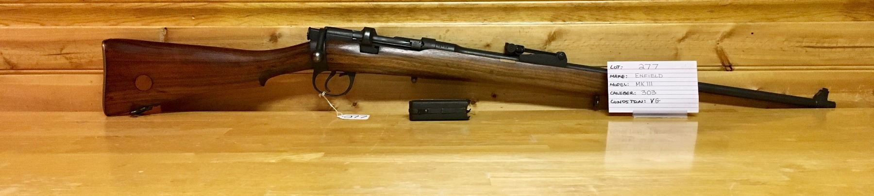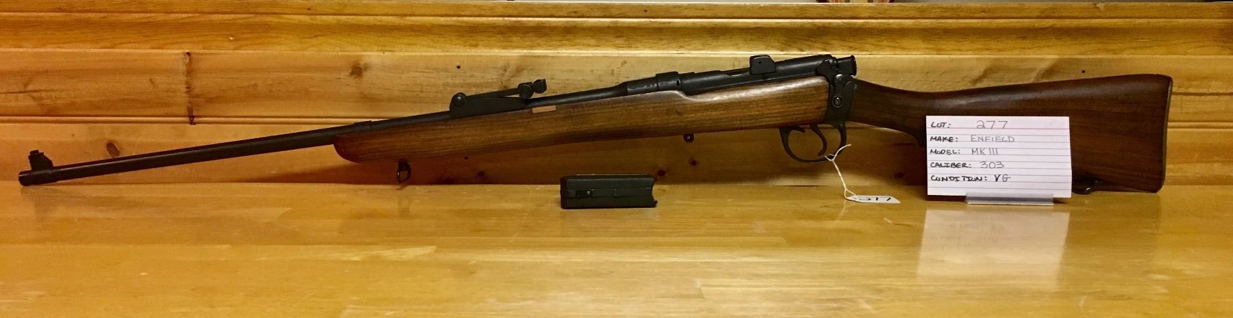 LOT:  277 MAKE:  ENFIELD MODEL:  MK III CALIBER:  .303 CONDITION:  VG S/N:  41432