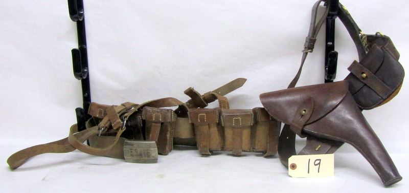 Lot 19 BOX LOT LEATHER GUN, AMMO BELT