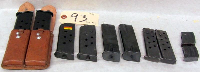 2 WINCHESTER MODEL 69 5 SHOT MAGS, 2 1911 32 AUTO MAGS, 2 1911 9MM MAGS IN LEATHER MAG POUCH, 2 1911 9MM MAGS AND 2 9MM MAGS MEC-GAR MG-BRHP-13, NORINCO 308 MAG, 1 METAL SKS MAG. PINNED TO 5 SHOTS