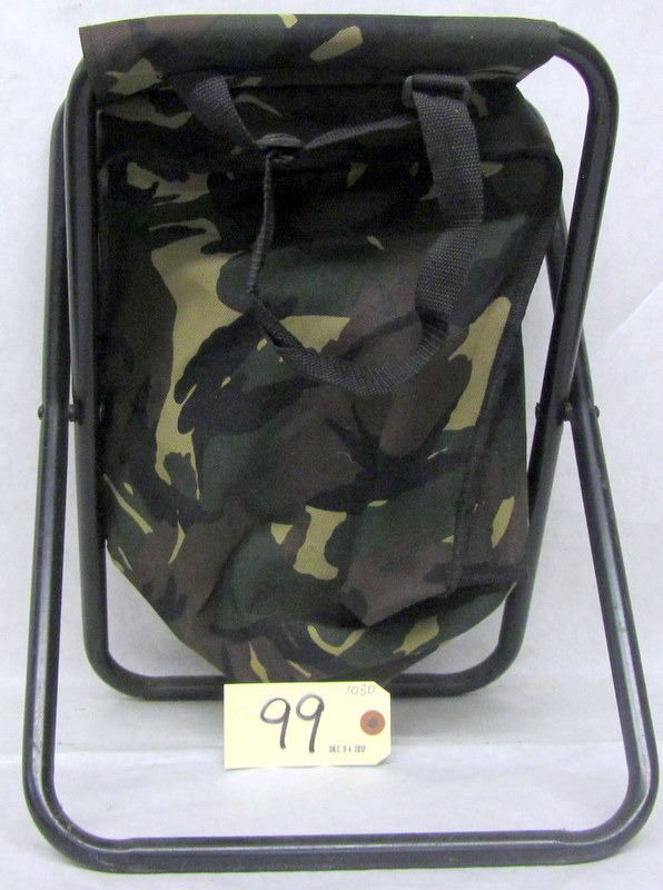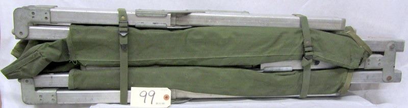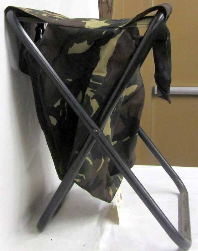 PICK UP ONLY 1 MILITARY STYLE ALUMINUM FRAME SLEEP COT, 2 CAMO FOLD UP STOOLS/CHAIRS