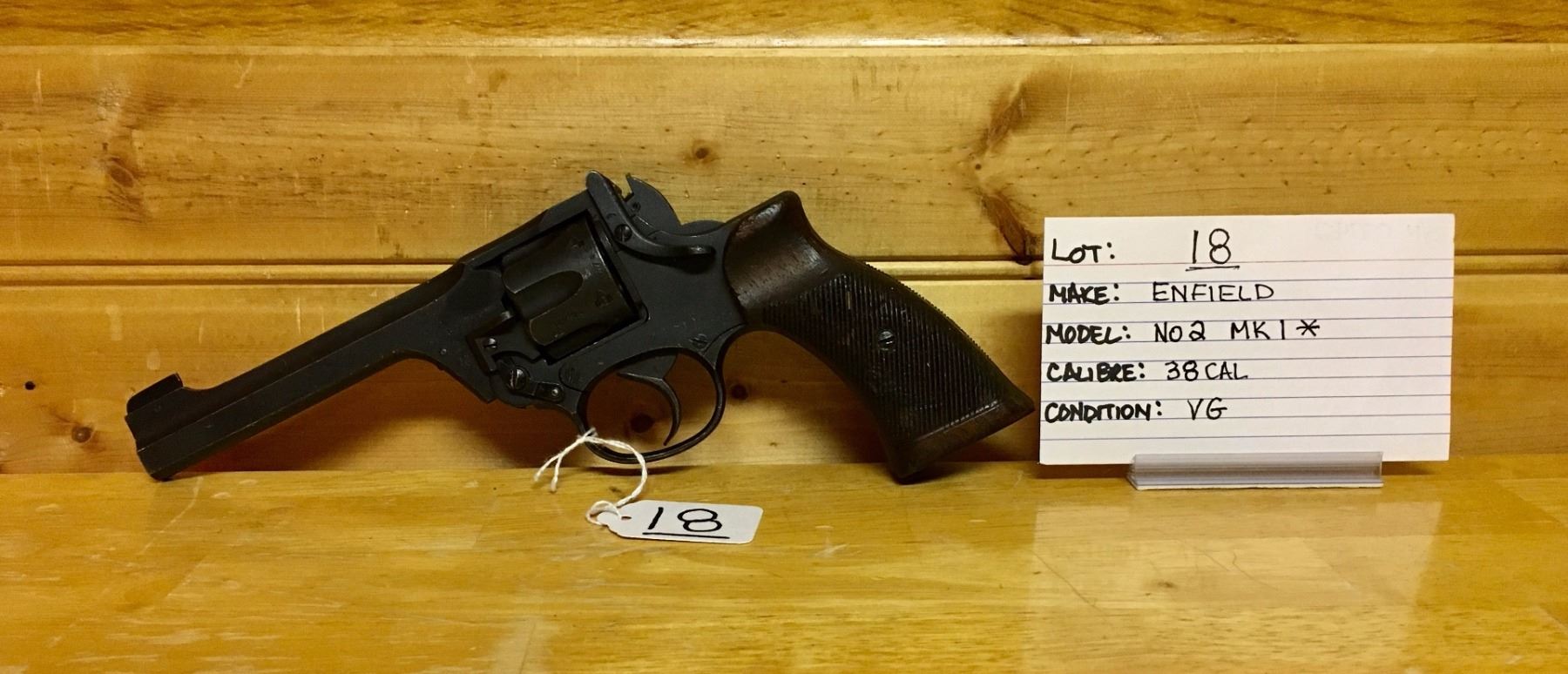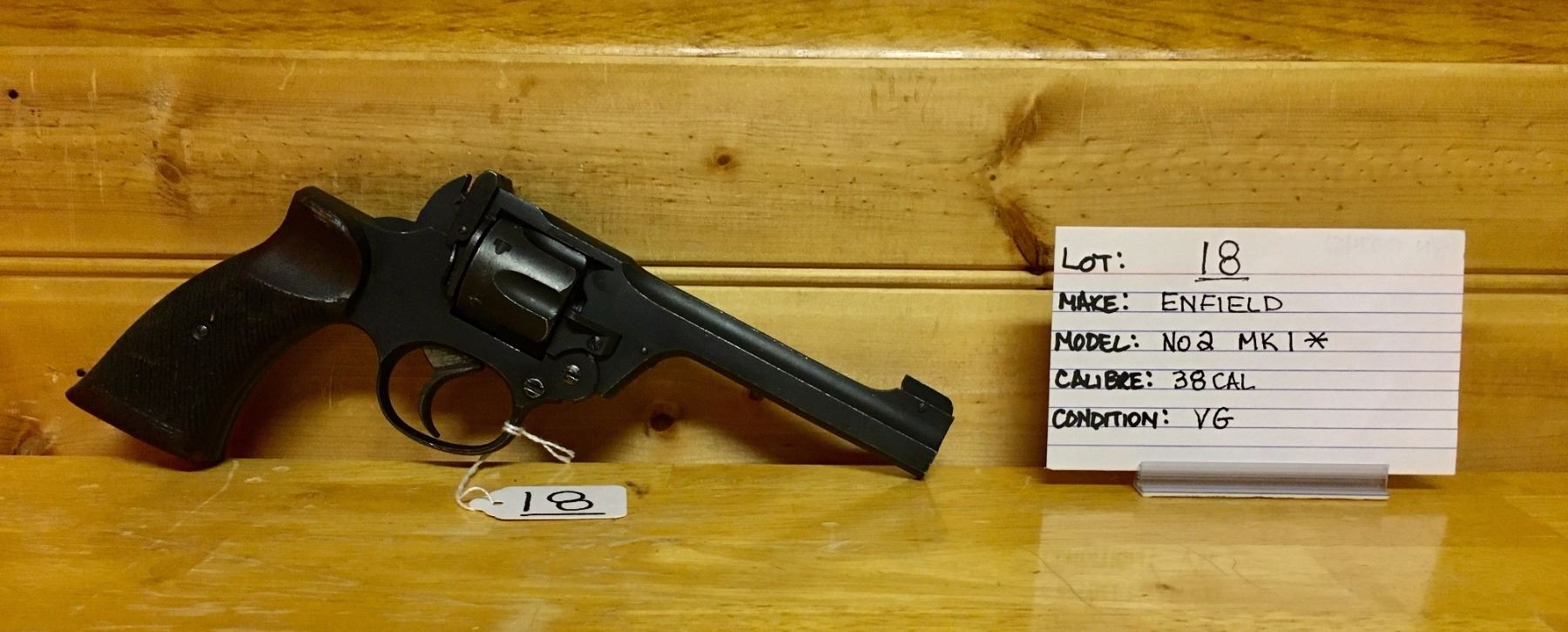 LOT: 18 MAKE: ENFIELD MODEL: NO 2 MK 1 * CALIBER: .38 CAL CONDITION: VG S/N: 07742 NOTE: RESTRICTED