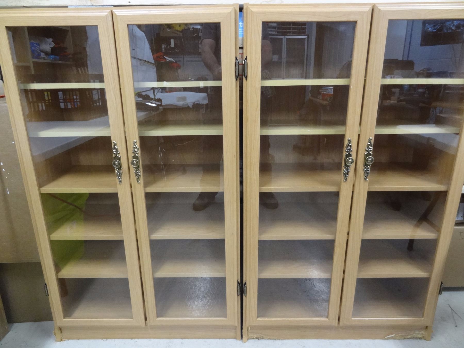 Lot 765 SET OF GLASS DOOR WOOD CABINETS **NO SHIPPING**