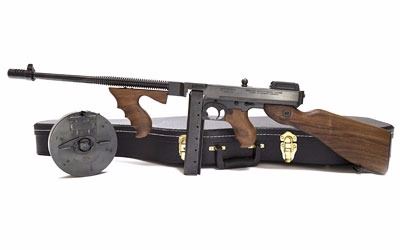 Auto Ordnance, T1, Semi-automatic, 45ACP, 16.5" Barrel, Black Finish, Walnut Stock, Adjustable Sights, 1-30Rd Stick Magazine & 1-50Rd Drum, 2 Magazines, Includes Violin Case